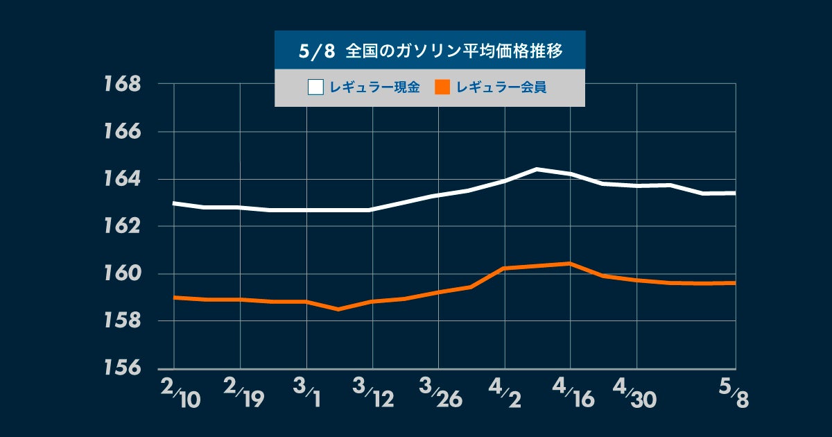 ゴールデンウイーク中は大きな動きは見られなかったガソリン価格ですが、先週後半からはやや値下がり傾向となっています。
