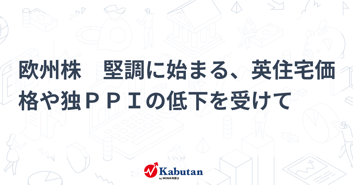 欧州株 堅調に始まる、英住宅価格や独PPIの低下を受けて | 市況 - 株探ニュース