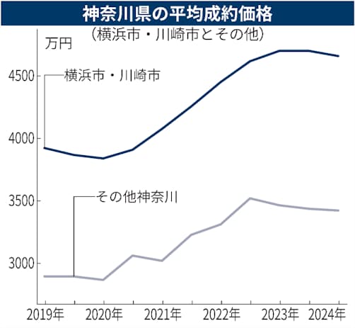 20年上期までは横ばいでしたが、20年下期から22年下期まで価格は上昇し、その後は横ばい傾向になっています。19年ごろは約3400万円だった価格が現在では約4200万円まで上がっているというのは少々驚きです。